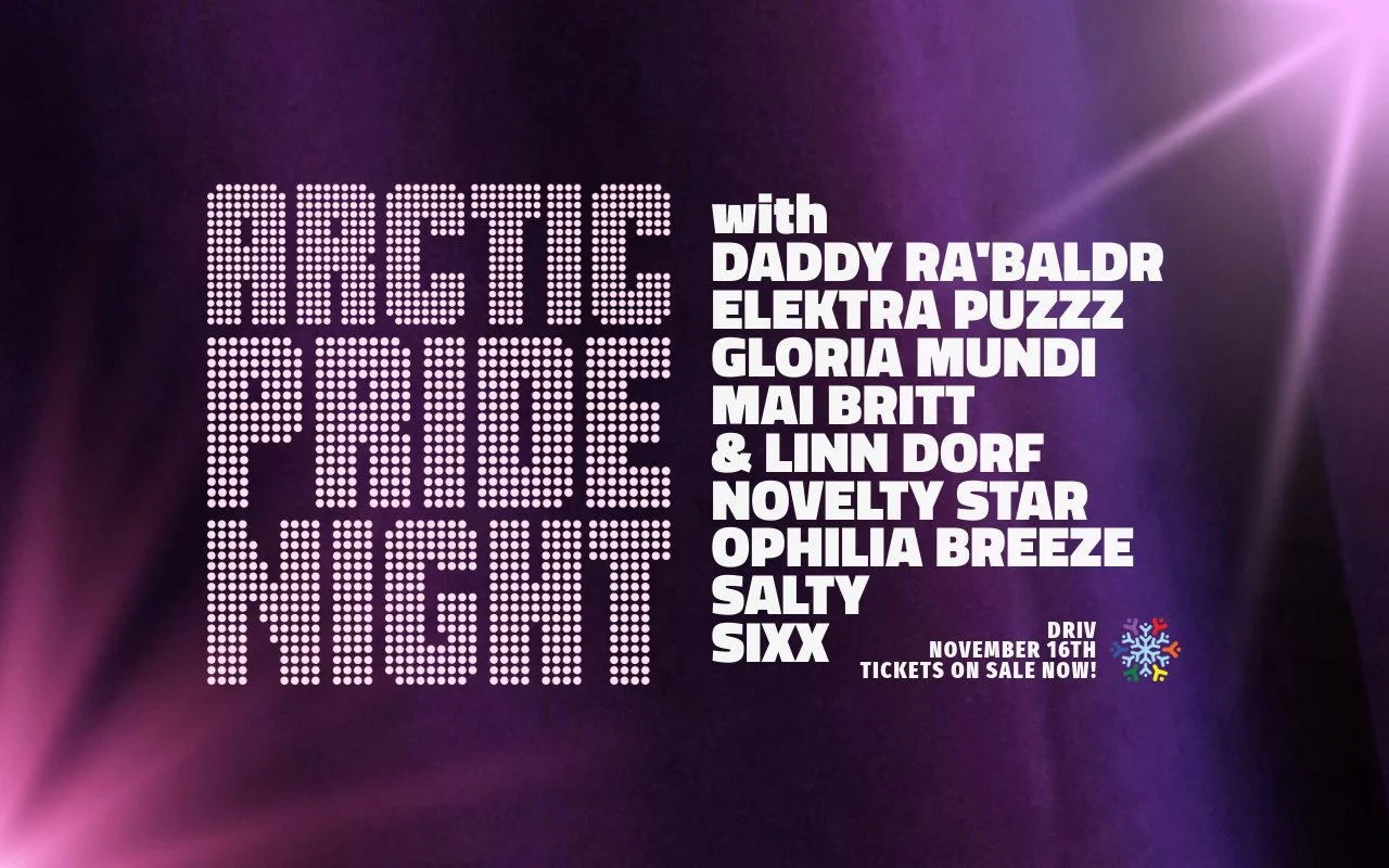 I år er Arctic Pride Night på Studenthuset Driv og vi gleder oss til å fylle hele huset med fest, show og samhold!